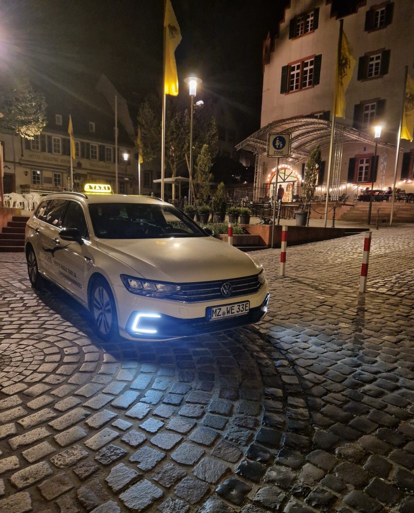 Aufgrund der teilweise kritischen Verfügbarkeit von Taxen an den Wochenenden unterstützen wir gerne Ihre Hochzeitsfeier mit einem Shuttle, der ihre Gäste zuverlässig, schnell und sicher nach Hause bzw. in das gebuchte Hotel bringt. Preise pro Stunde ab 75 € (Fahrer inkl. Fahrzeug und Sprit) – sprechen Sie uns an für ein verbindliches Angebot! Hochzeits-Shuttle